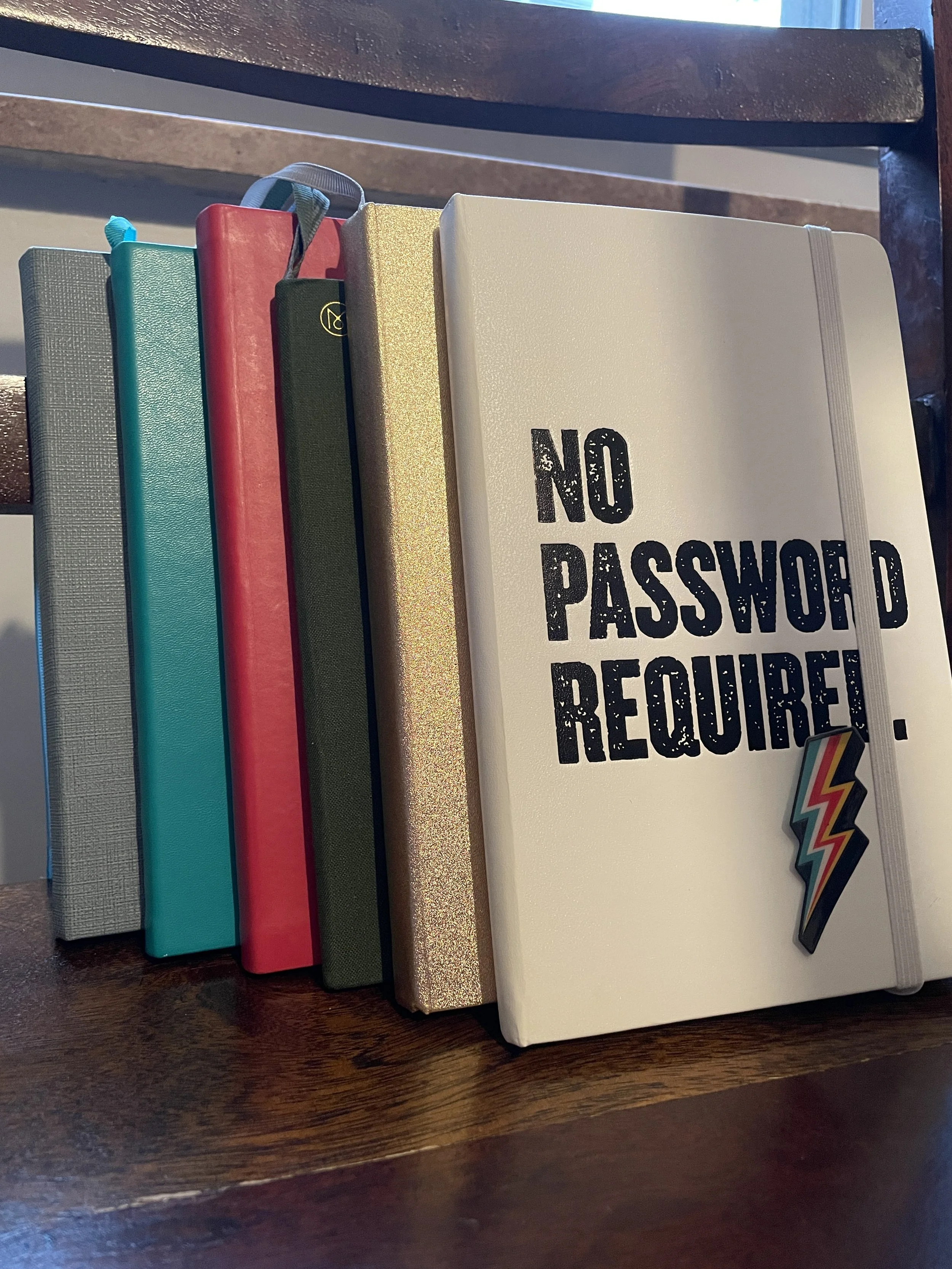 An eclectic mix of journals, some random ones we already had around the house, others purchased specifically for this activity.
