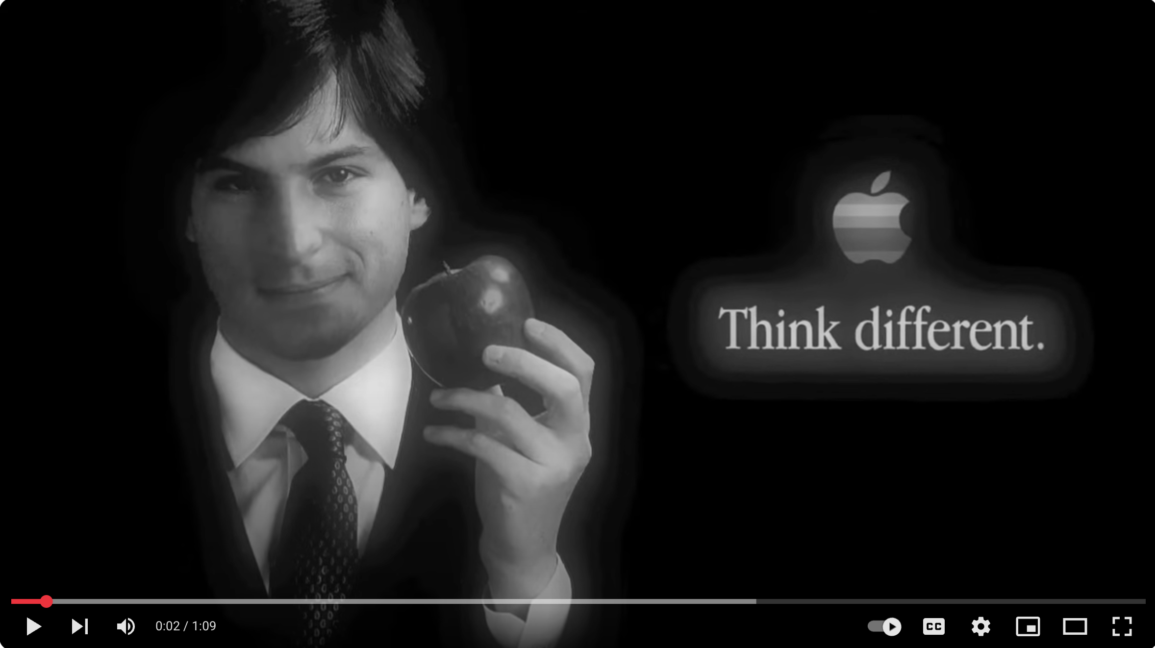 Here’s the narration: “Here’s to the crazy ones. The misfits. The rebels. The troublemakers. The round pegs in the square holes. The ones who see things differently. They’re not fond of rules and they have no respect for the status quo. You can quote them. Disagree with them. Glorify or vilify them. About the only thing you can’t do is ignore them. Because they change things. They push the human race forward. And while some may see them as the crazy ones, we see genius. Because the people who are crazy enough to think they can change the world are the ones who do.”